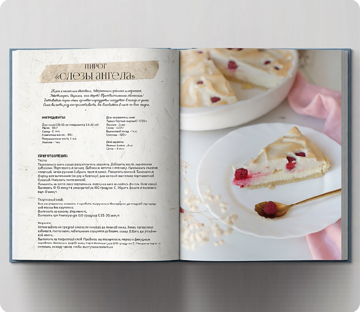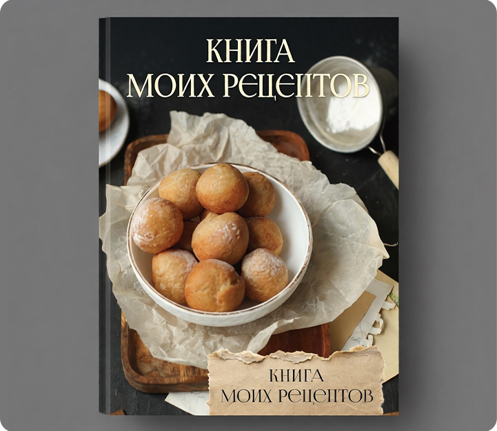 Всё готово? Тогда пришло время дать жизнь вашей кулинарной коллекции!Отправляйте макет на печать и уже совсем скоро на вашем столе появится превосходный сборник семейных рецептов.